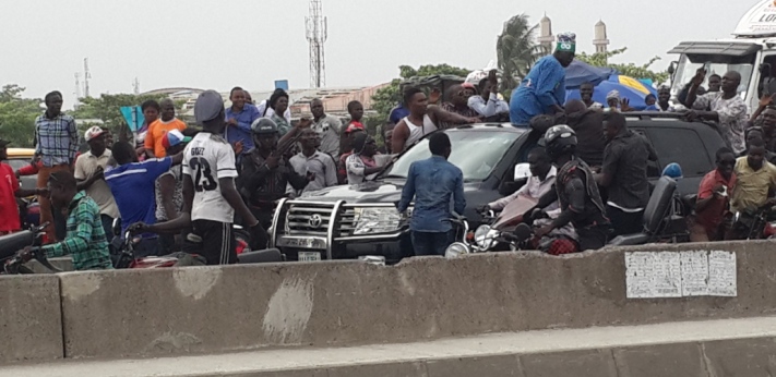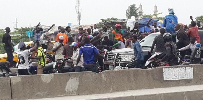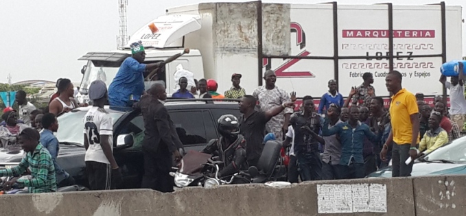 Motorists and commuters stopped to have glimpse of the generalissimo of Lagos politics. Tinubu was coming from APC Governorship rally at Amuwo Odofin Local Government.