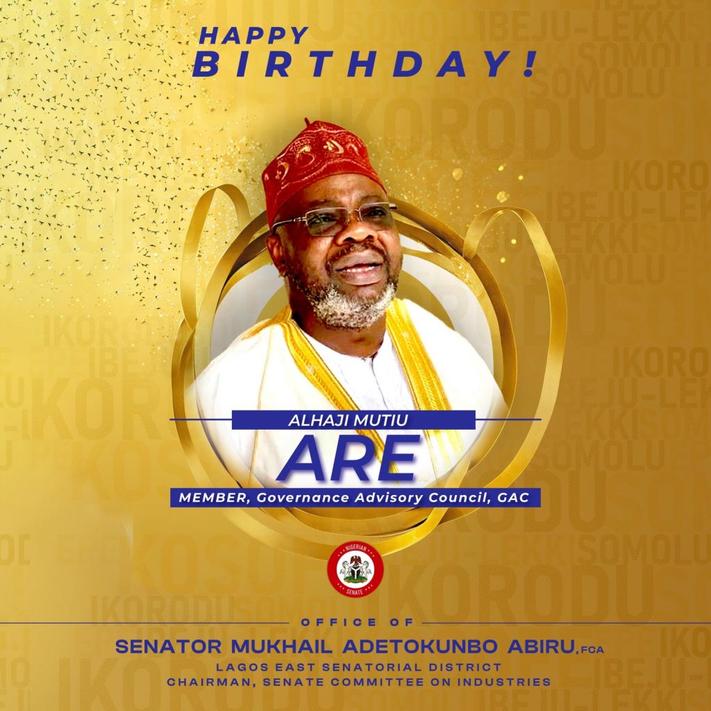 “On behalf of my family, and the good people of the Lagos East Senatorial District, I congratulate a distinguished member of the prestigious Governance Advisory Council, GAC, Alhaji Mutiu Are, on his birthday.